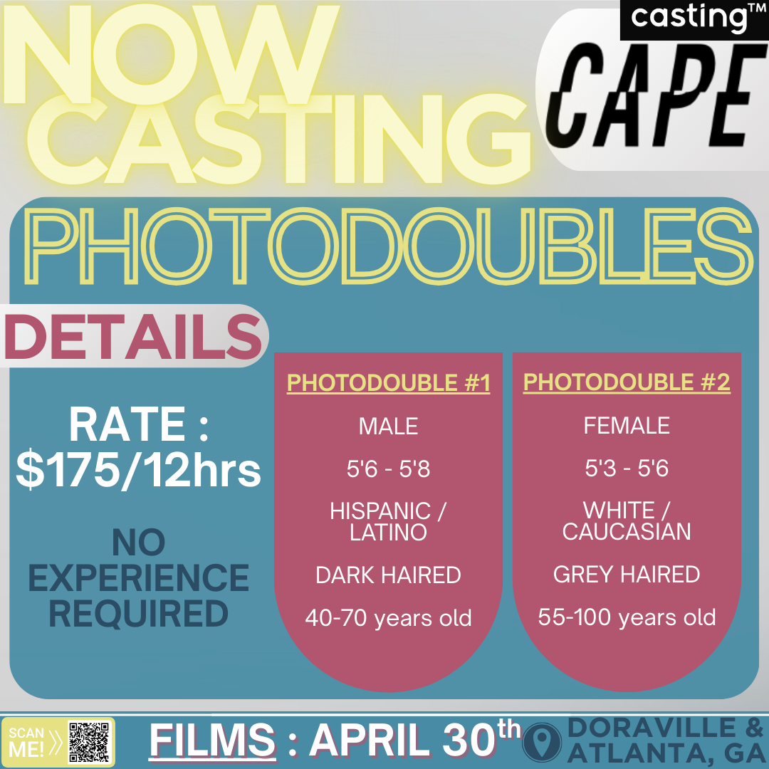 CURRENT PHOTODOUBLE ROLES WE ARE SEARCHING FOR: ⭐️ PHOTODOUBLE #1 (40-70s, Hispanic/Latino, Male, 5’6-5’8) ⭐️ PHOTODOUBLE #2 (55-100, White/Caucasian, Female, 5’3-5’6)