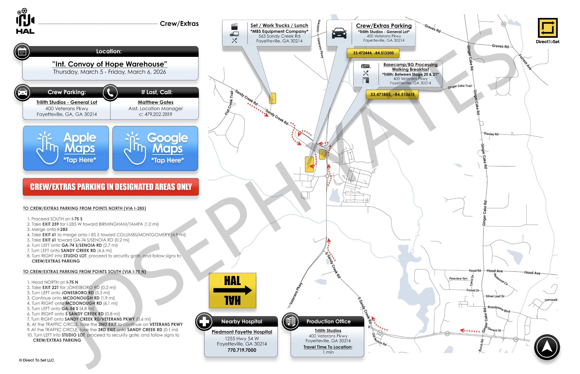 CALL TIMES & PARKING :