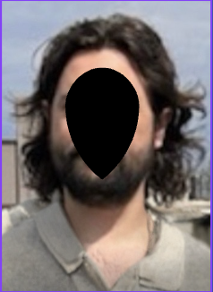 Shoulder-length black hair / beard