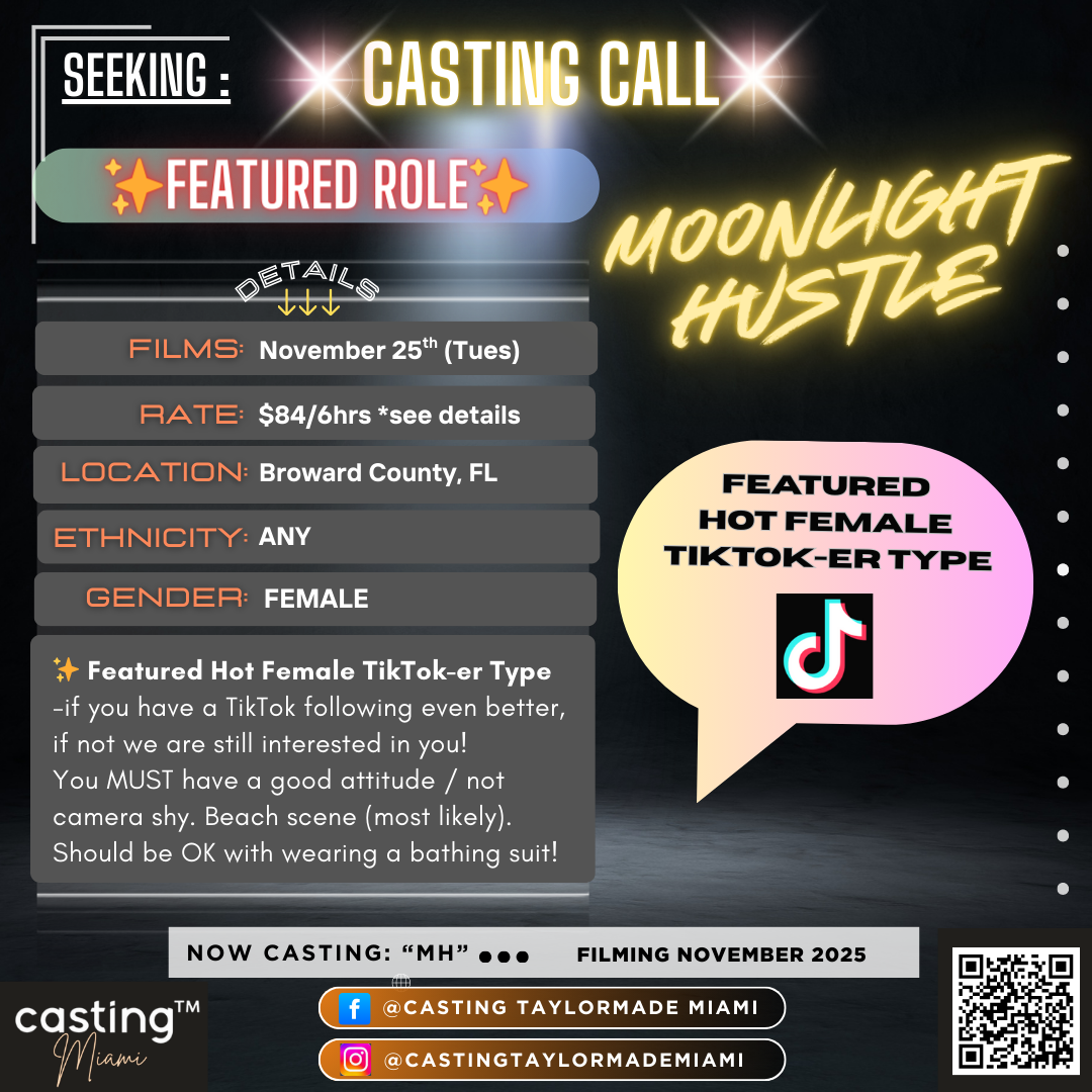 Filming will be in / around the Hollywood / Ft. Lauderdale, FL (BROWARD COUNTY) area.