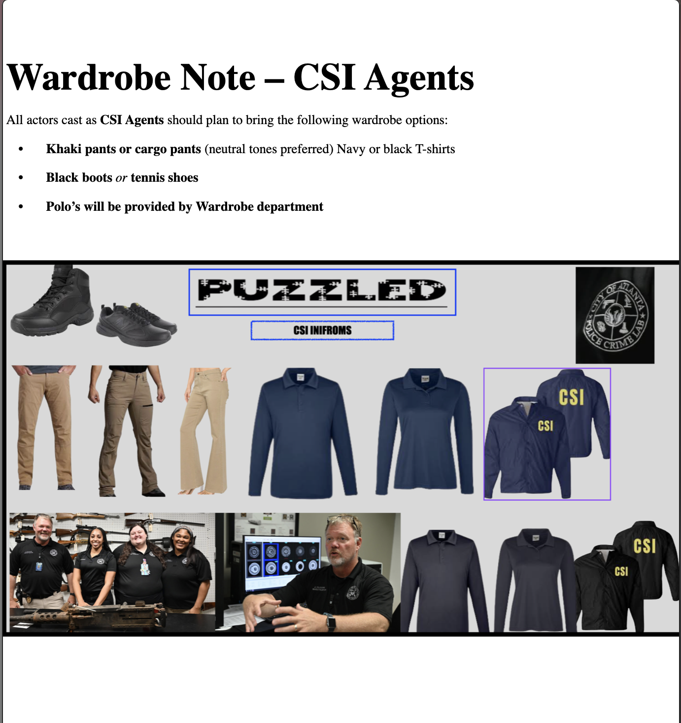 As always, we are counting on you to show up ON TIME, in the CORRECT WARDROBE, hair CAMERA READY, makeup CAMERA READY, your online PAPERWORK COMPLETED, and a GREAT ATTITUDE. Have fun!