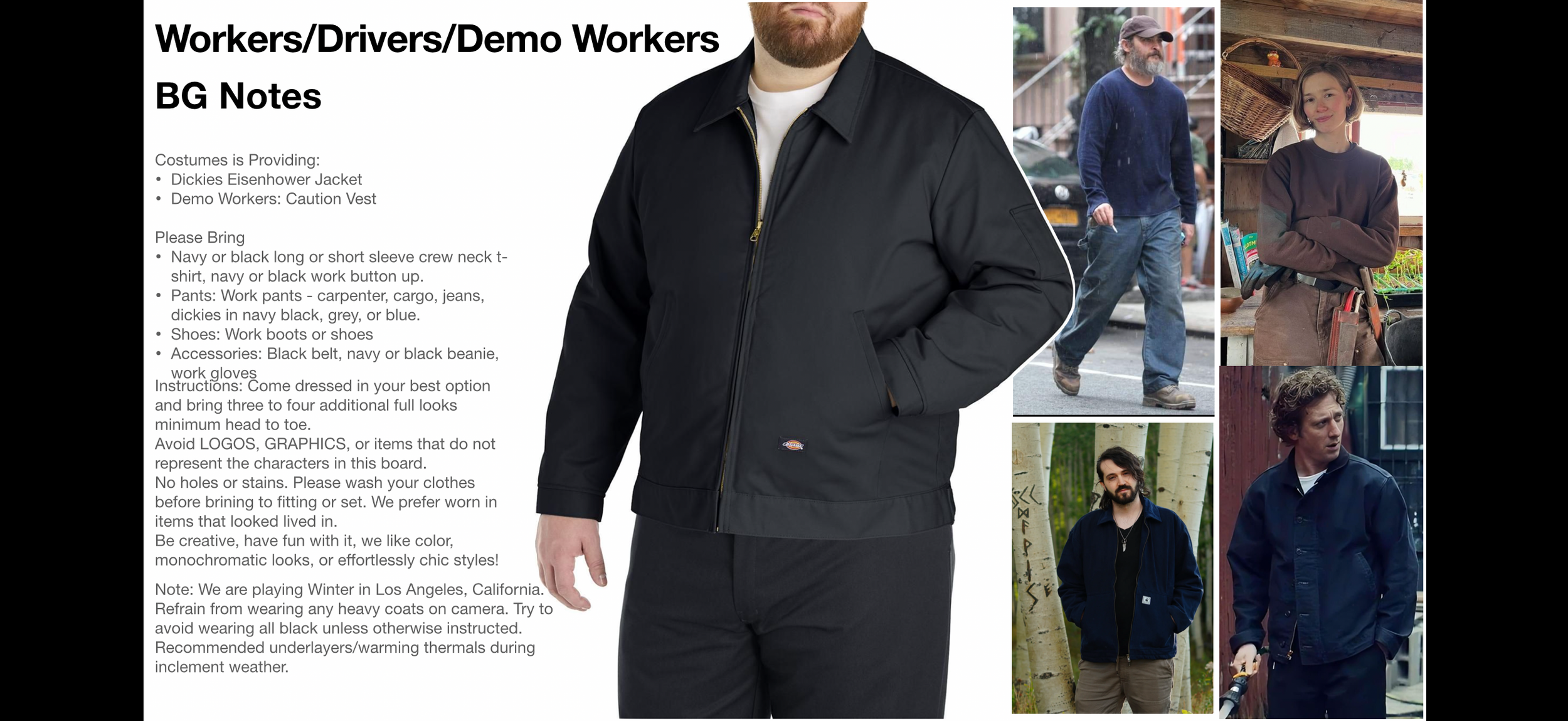 If your hair is dyed an unnatural color or you have a dramatic style change planned, please notify production before arriving.
