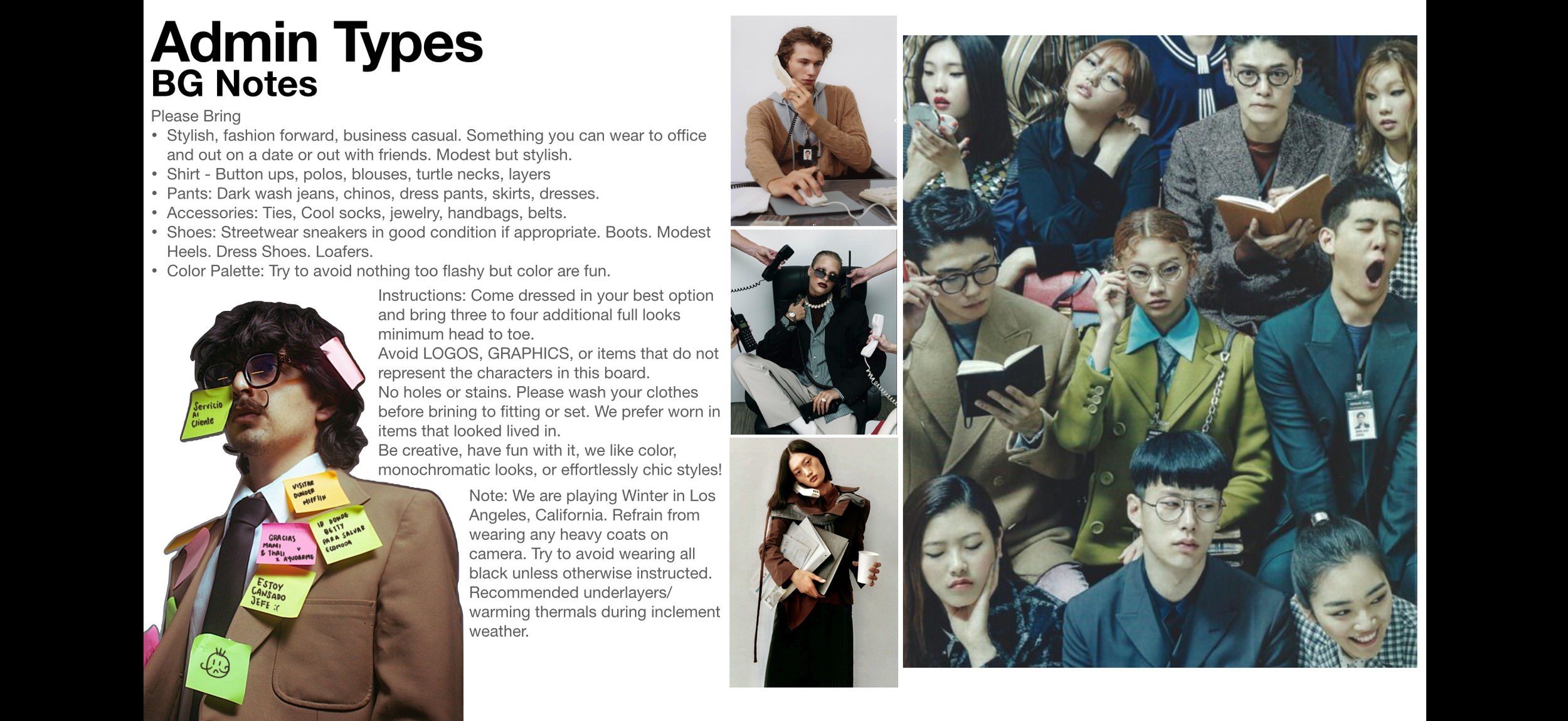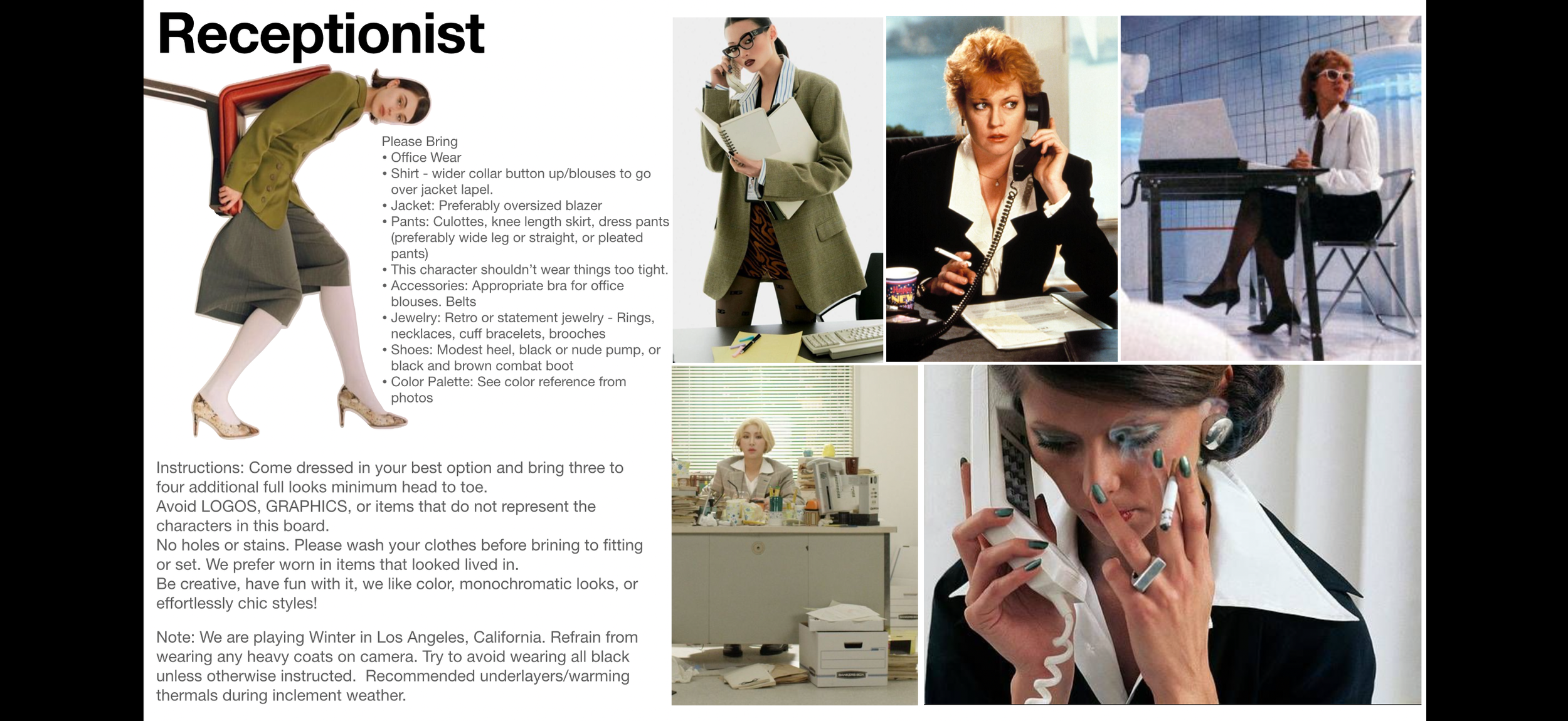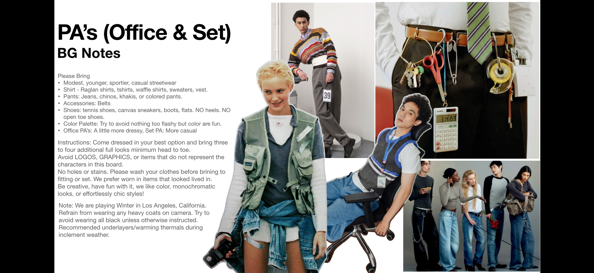 PLEASE BRING AT LEAST 3 FULL OUTFIT OPTIONS FOR THE ROLE YOU HAVE BEEN BOOKED FOR. IT IS VERY IMPORTANT YOU BRING OUTFIT OPTIONS PLEASE!!!